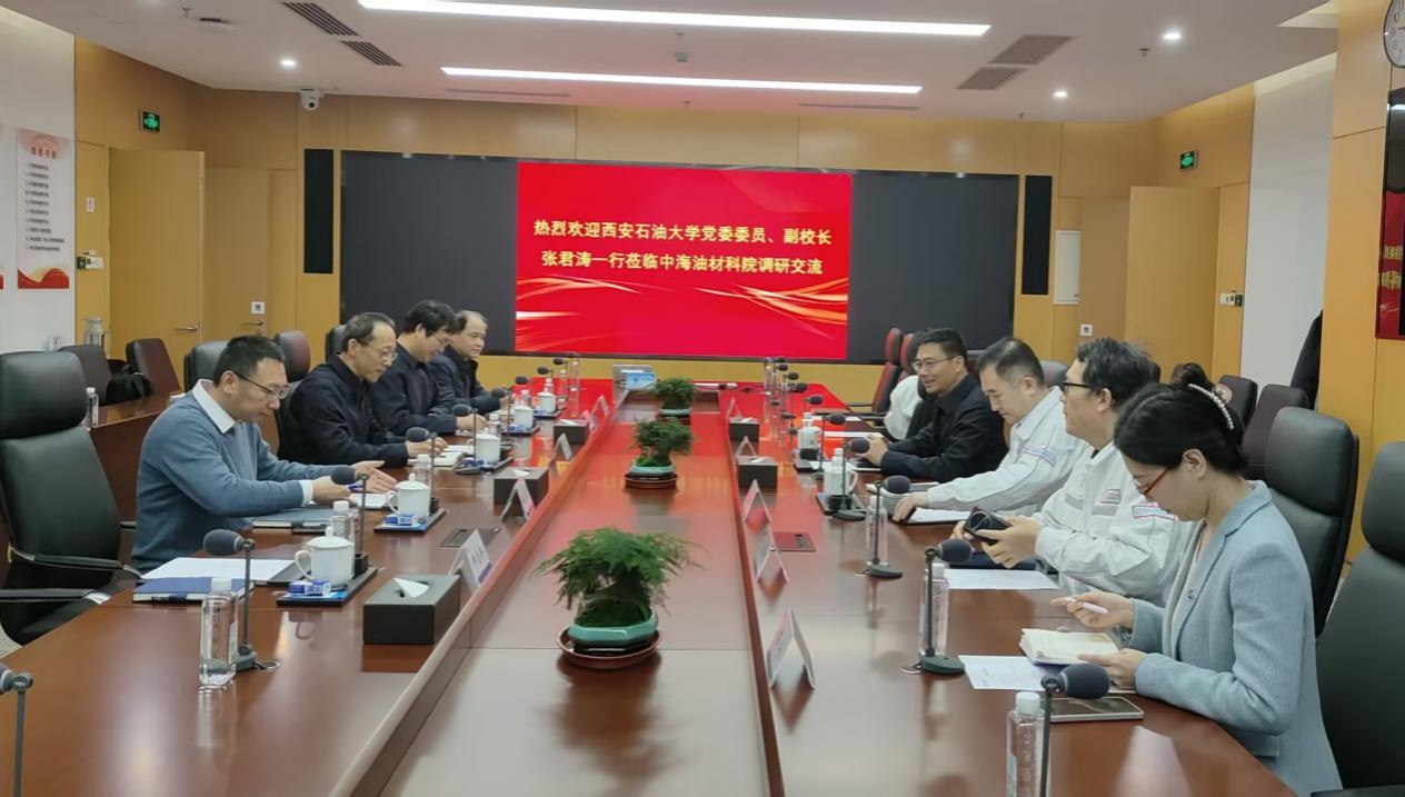 1月23日上午,张君涛一行来到中海油化工与新材料科学研究院(以下简称“材科院”)。在材科院党委委员、副院长张鹏的带领和科技管理部副经理曲顺利的讲解下,参观了高值化工品研究中心、先进材料研究中心、高端润滑油研究中心、分析表征与数智赋能研究中心等七个实验室。材科院党委委员、副院长侯章贵主持座谈会,党委委员、副院长张鹏,集团公司资深专家、先进材料中心负责人傅送保,科技管理部副经理曲顺利,人力资源部岗位经理路宁,绿色低碳中心资深工程师张培培等部门负责人与技术专家参会。双方围绕能源化工与新材料领域的技术发展趋势、联合科研攻关、企业核心需求与产业发展、工程硕(博)士联合培养等议题展开对话。学校相关职能部门介绍了在化学化工、新材料等学科的师资力量,以及“原油直接裂解制化学品”等最新炼油化工科研成果;材科院分享了在先进材料研发、绿色低碳技术应用等方面的实践经验。通过交流,双方均表示要加强深化校企合作、实现资源互补的强烈意愿。