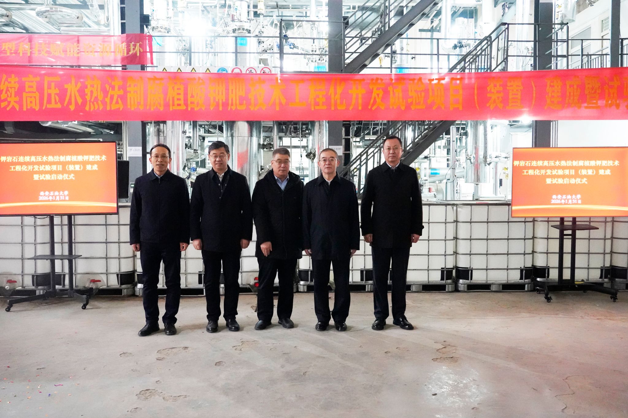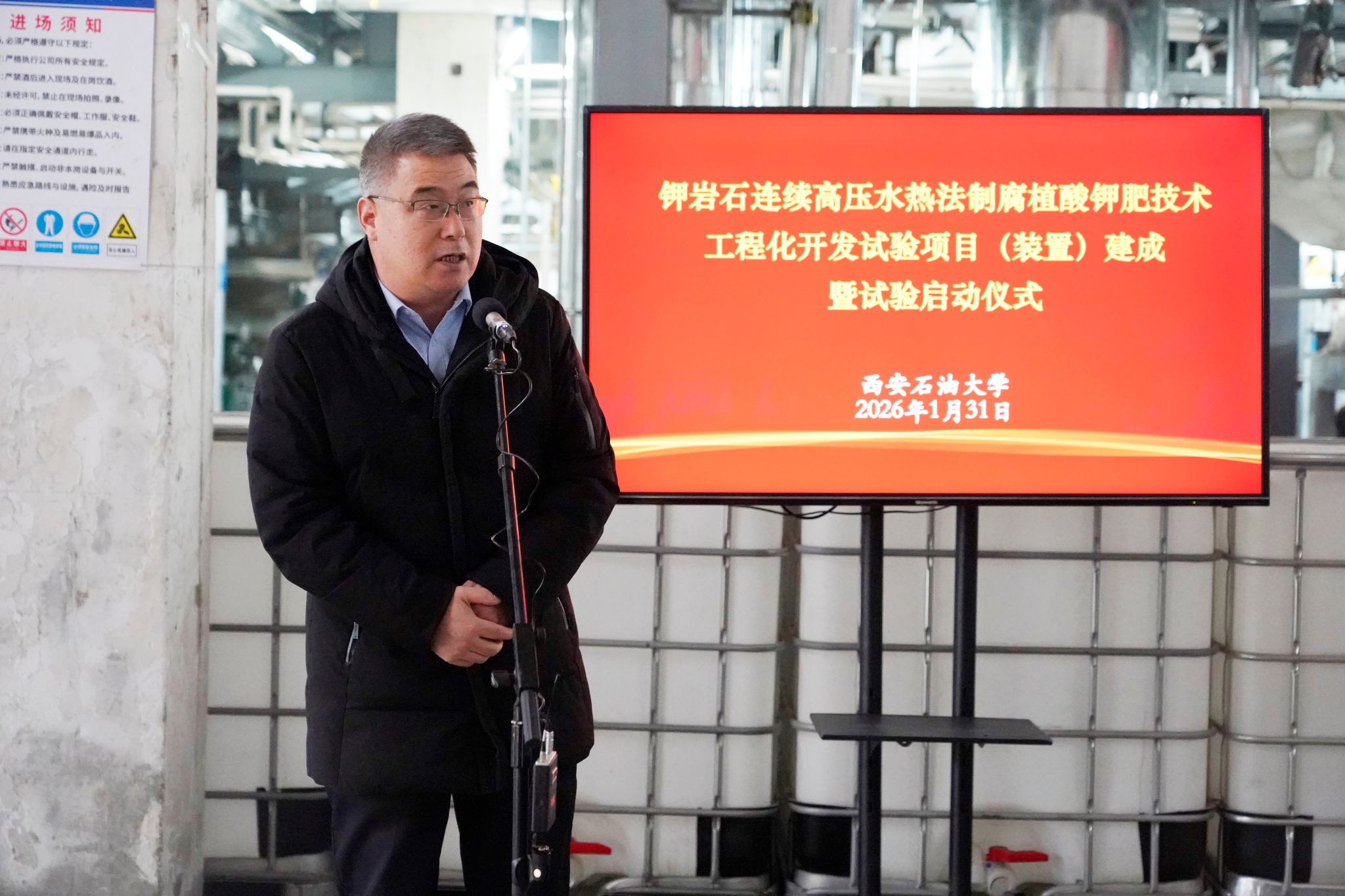 1月31日上午,beat365正版唯一官网“钾岩石连续高压水热法制腐植酸钾肥技术工程化开发试验项目”建成暨试验启动仪式在鄠邑校区如期举行。校党委书记常江、校长王进富、副校长张荣军出席仪式,项目联合科研团队负责人、承建单位代表以及学校相关职能处室负责人参加活动,共同见证项目落成投试的重要时刻。仪式由副校长张君涛主持。