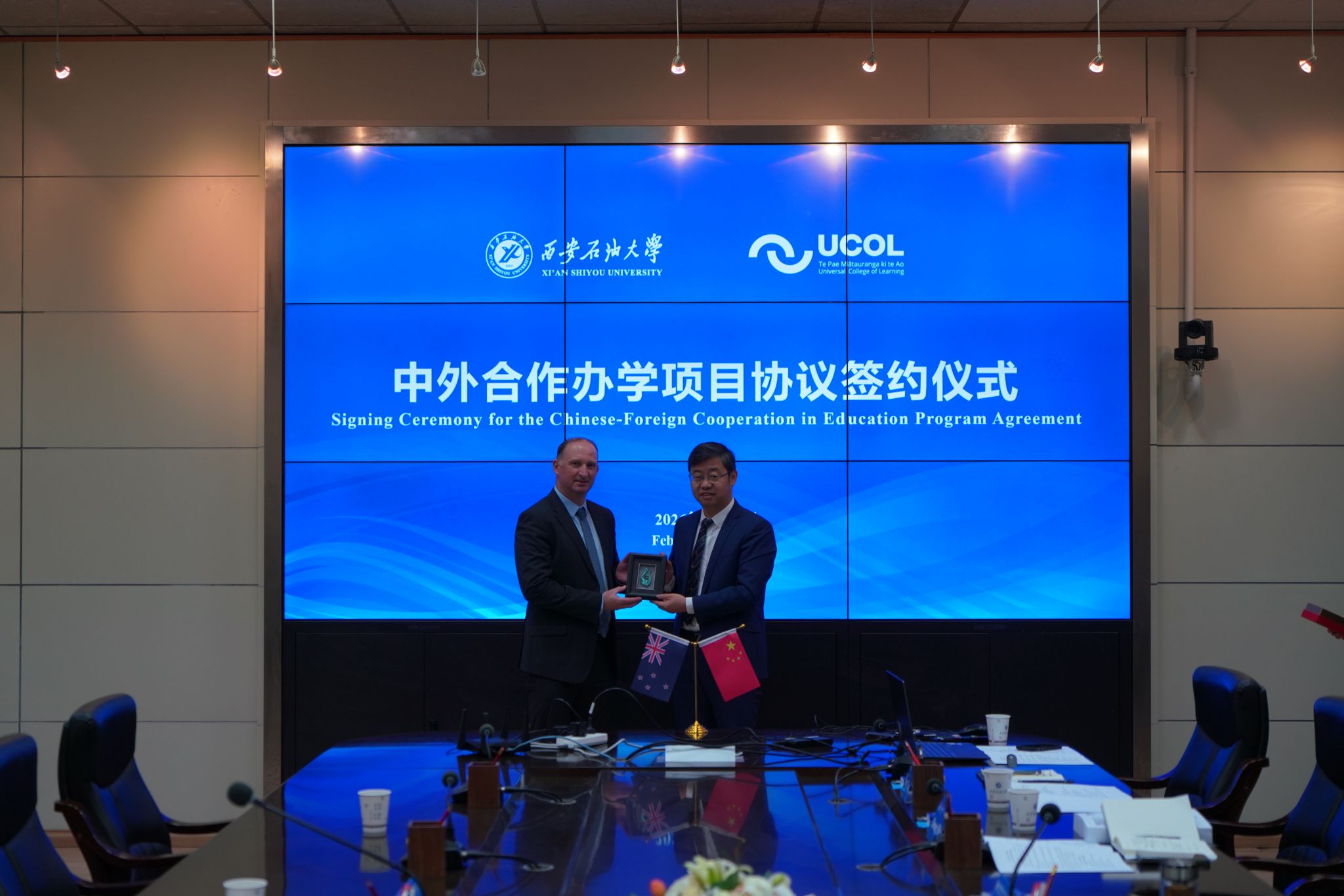 2月10日上午,学校与新西兰国立联合理工学院中外合作办学协议签约仪式在雁塔校区会议中心第二会议室成功举行。仪式采用线上线下相结合的形式举行,新西兰国立联合理工学院校长贾思敏·格罗夫斯、教学质量总监詹妮塔·拉普斯利线上出席,该校副校长迪恩·兰金、跨国教育总顾问肖恩李一行莅临现场;beat365官网校长王进富、副校长张荣军出席线下签约仪式。