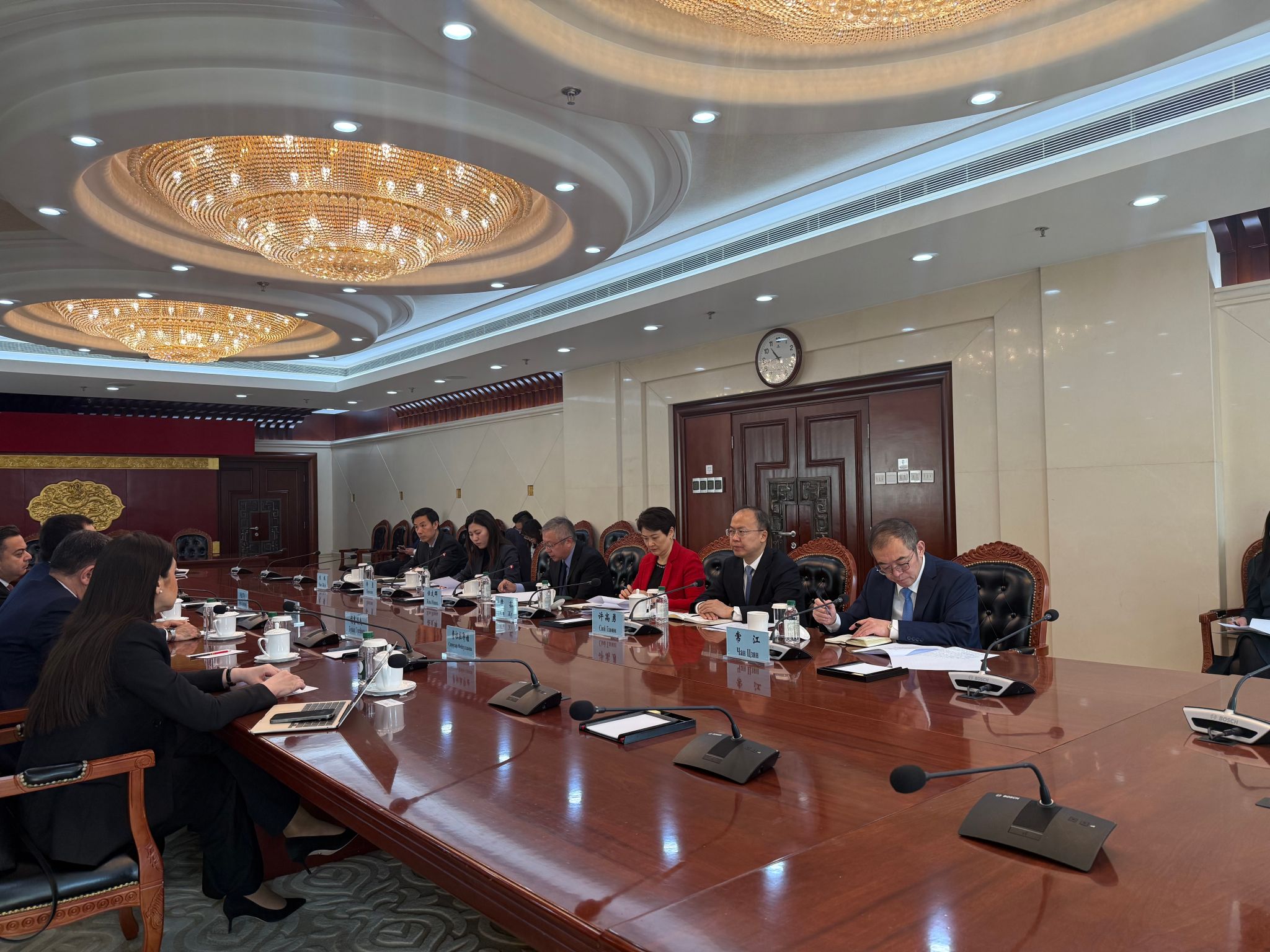 2月12日,教育部副部长任友群在京会见阿塞拜疆教育和科学部副部长哈桑·哈桑利,双方就中阿教育交流合作进行深入交流。教育部高等教育司副司长朱瑞、国际合作与交流司二级巡视员席茹,新疆教育厅副厅长许高勇参加会见。beat365官网党委书记常江作为高校代表应邀参会。