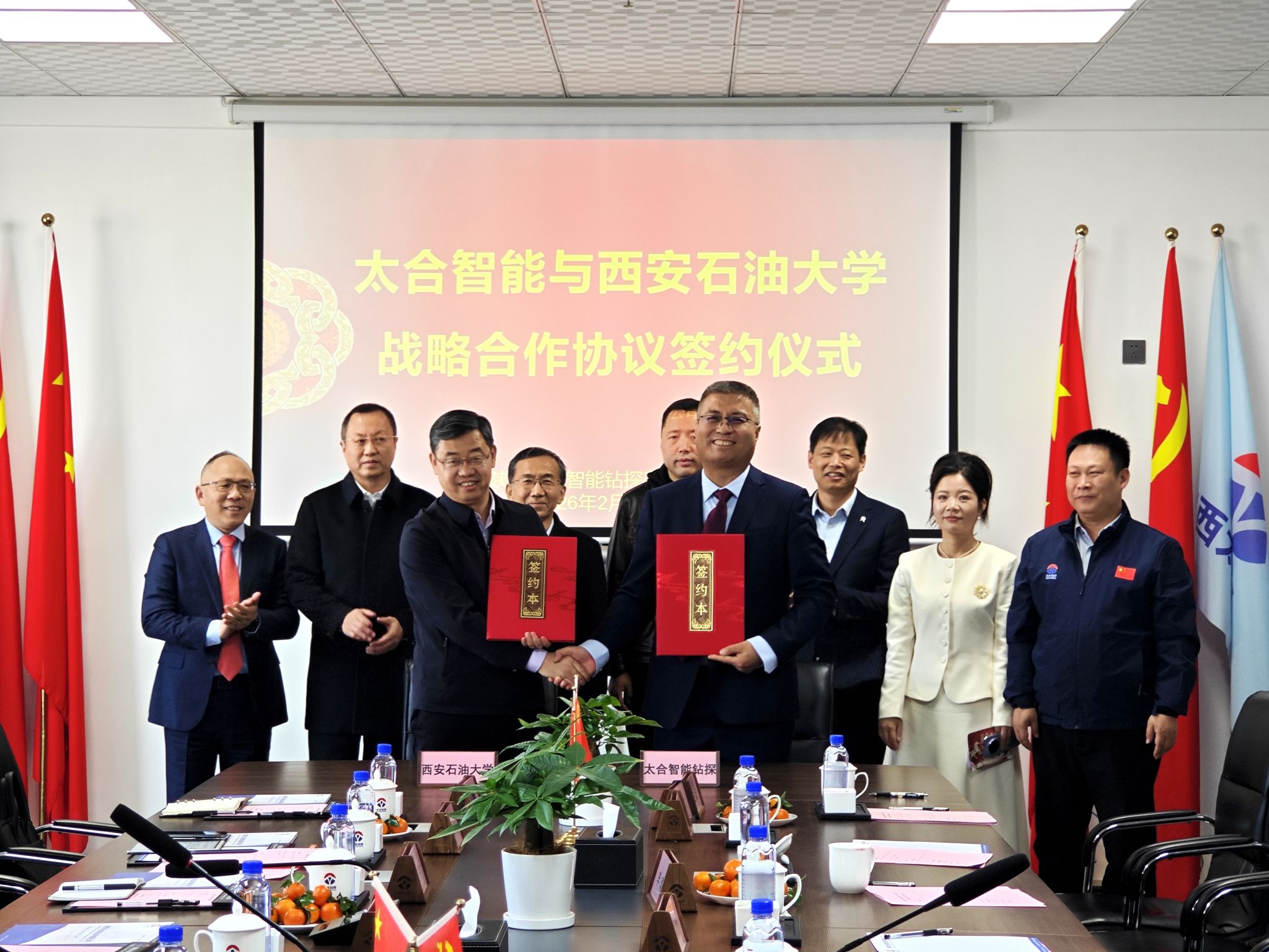 2月14日下午,beat365官网与陕西太合智能钻探有限公司(以下简称“公司”)在公司会议室签署战略合作框架协议。校长王进富、党委副书记张木、副校长张荣军,校友企业家联合会会长、重庆智展齿轮传动有限公司董事长何荣,陕西远大电气科技集团有限公司董事长郭小卫,公司董事长王义红、财务总监李欢、国内经营事业部总裁杨新锋、工程技术事业部总裁王军出席签约仪式。