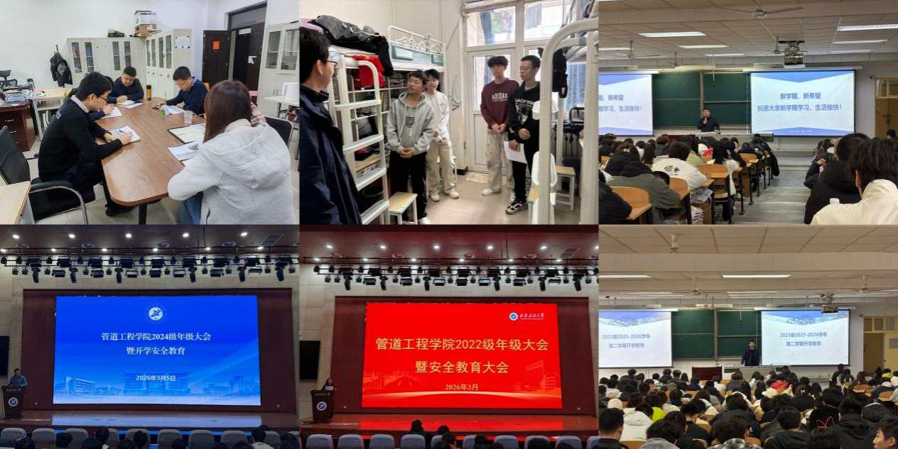 石油工程学院高度重视新学期学生教育管理工作,第一时间组织学院领导、辅导员、班主任深入学生学习生活一线。学院党委书记司马文龙走进学生宿舍开展慰问交流,详细了解同学们返校适应、生活需求及新学期规划情况,叮嘱学生们及时调整状态、明确新学期学习目标。各年级辅导员扎实推进“三早两查一巡”工作,对学生问题及时教育纠偏,并通过问卷调查、一对一谈话、班干部会议等形式精准调研思想动态。班主任召开新学期主题班会,分析上学期学业成绩、梳理薄弱环节,同步开展安全教育与文明行为倡导,引导学生树立安全意识、规范日常言行。