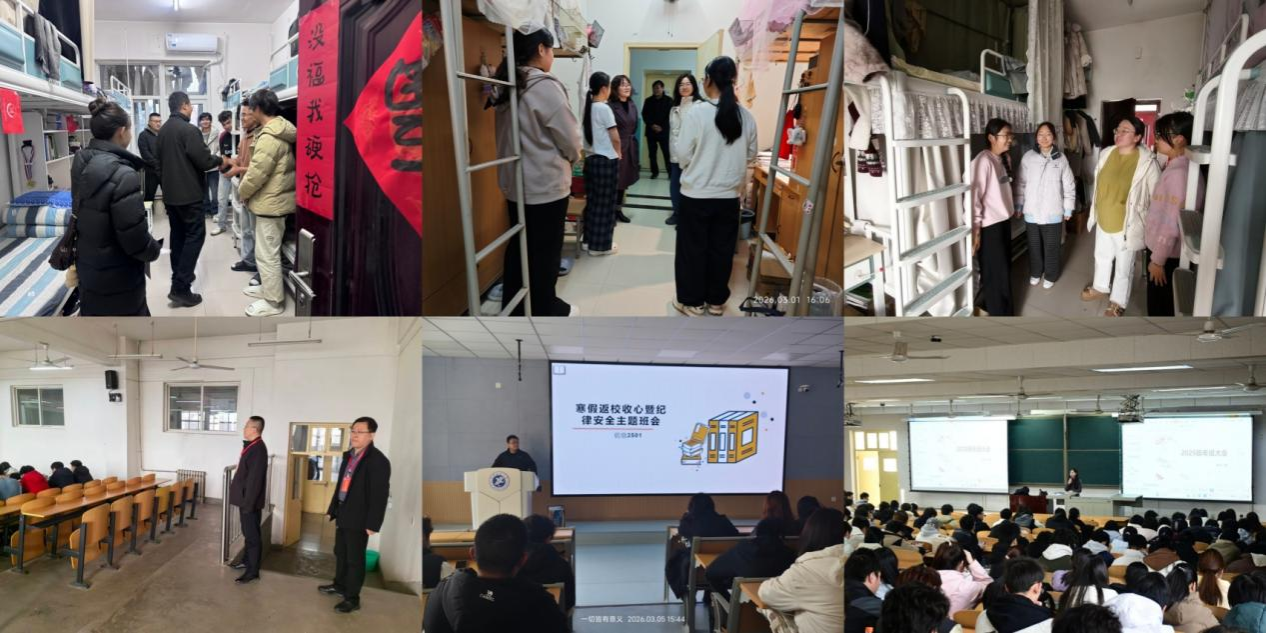 春启新程,万象更新。开学第一周,各院(系)紧扣学生返校报到关键节点,迅速行动、多措并举,组织领导班子、辅导员、班主任全覆盖深入学生宿舍、课堂一线,开展检查慰问与调研指导,精准掌握学生思想动态和实际需求,及时协调解决各类问题,切实保障新学期教育教学工作平稳有序开展。各单位坚持以生为本、强化精准施策,从思想引领到学业指导,从生活保障到安全管理,全方位筑牢育人阵地,为学生成长成才保驾护航。
