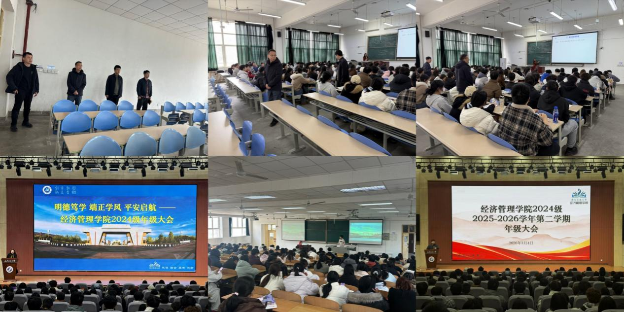 经济管理学院以“明德笃学、端正学风、平安启航”为主题开展新学期系列学生工作。院领导班子带队,联合班主任、辅导员深入学生宿舍走访慰问,摸排返校情况、思想动态和生活需求,重点排查安全隐患,叮嘱学生合理规划作息。学院领导班子深入课堂一线随堂检查,与师生交流强调课堂纪律,推动教风学风建设走深走实。各年级召开年级大会,围绕学业规划、安全教育、职业发展系统部署,各班级开展素质拓展活动,增强班级凝聚力,引导学生快速融入集体、提振精神面貌。