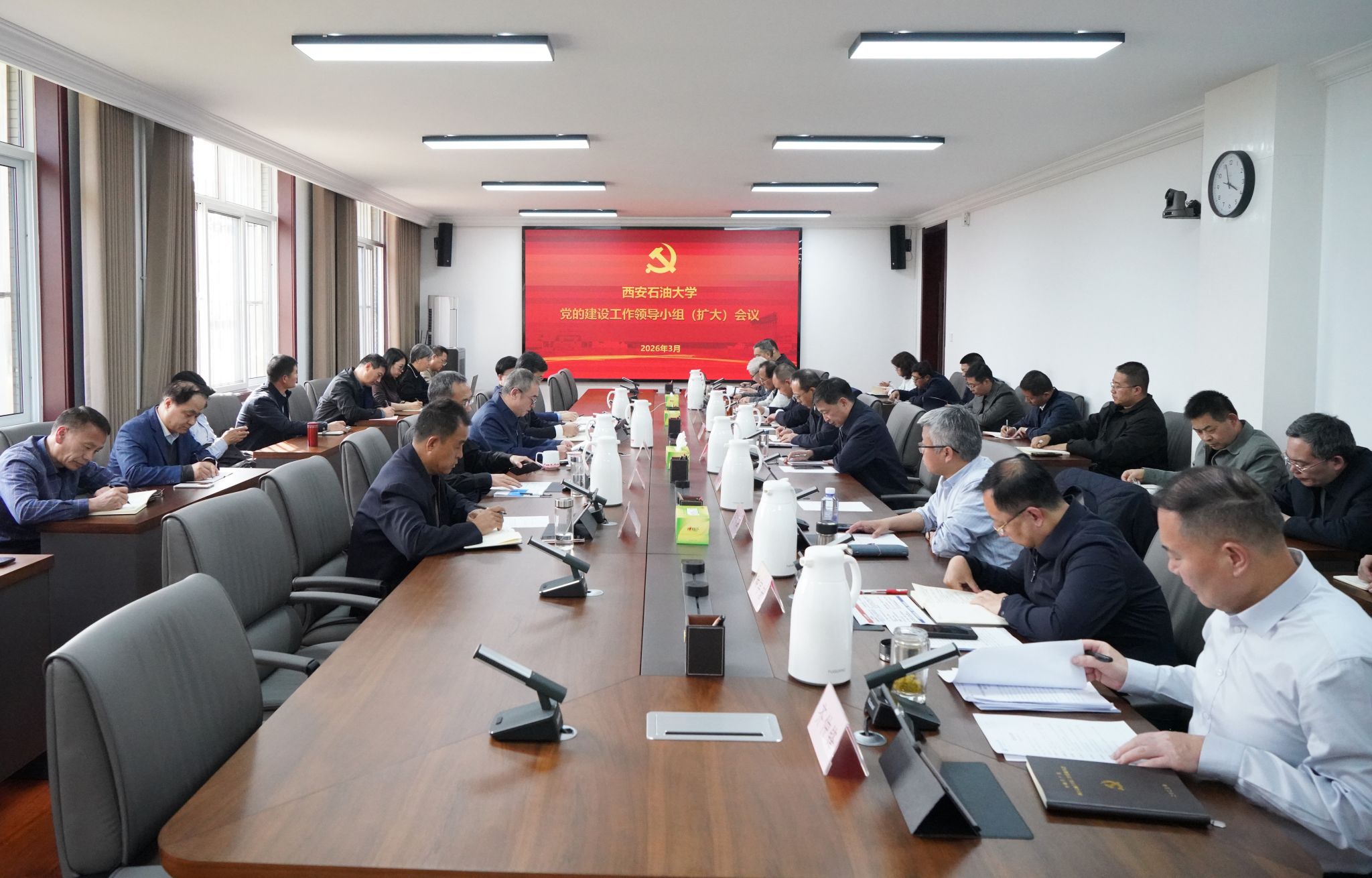 3月11日,学校在鄠邑校区第三会议室召开党的建设工作领导小组(扩大)会议,认真学习贯彻习近平总书记关于在全党开展树立和践行正确政绩观学习教育的重要指示,传达学习中央和省委党的建设工作领导小组会议精神,启动部署树立和践行正确政绩观学习教育。校党委书记常江主持会议并讲话。全体校领导,校党委委员,党群部门主要负责人,各院(系)级单位党组织书记参加会议。