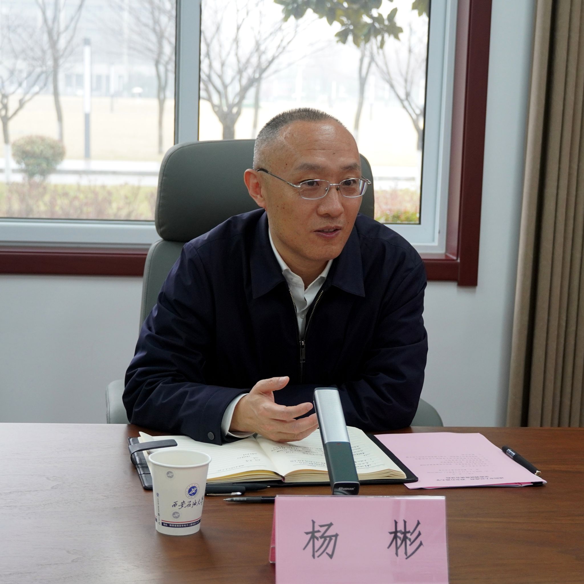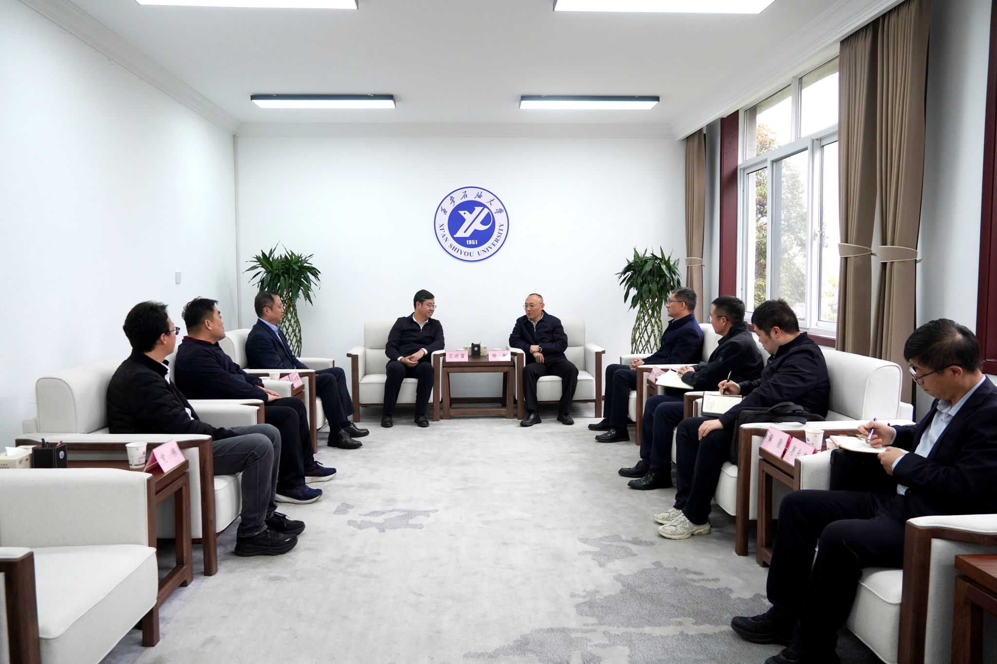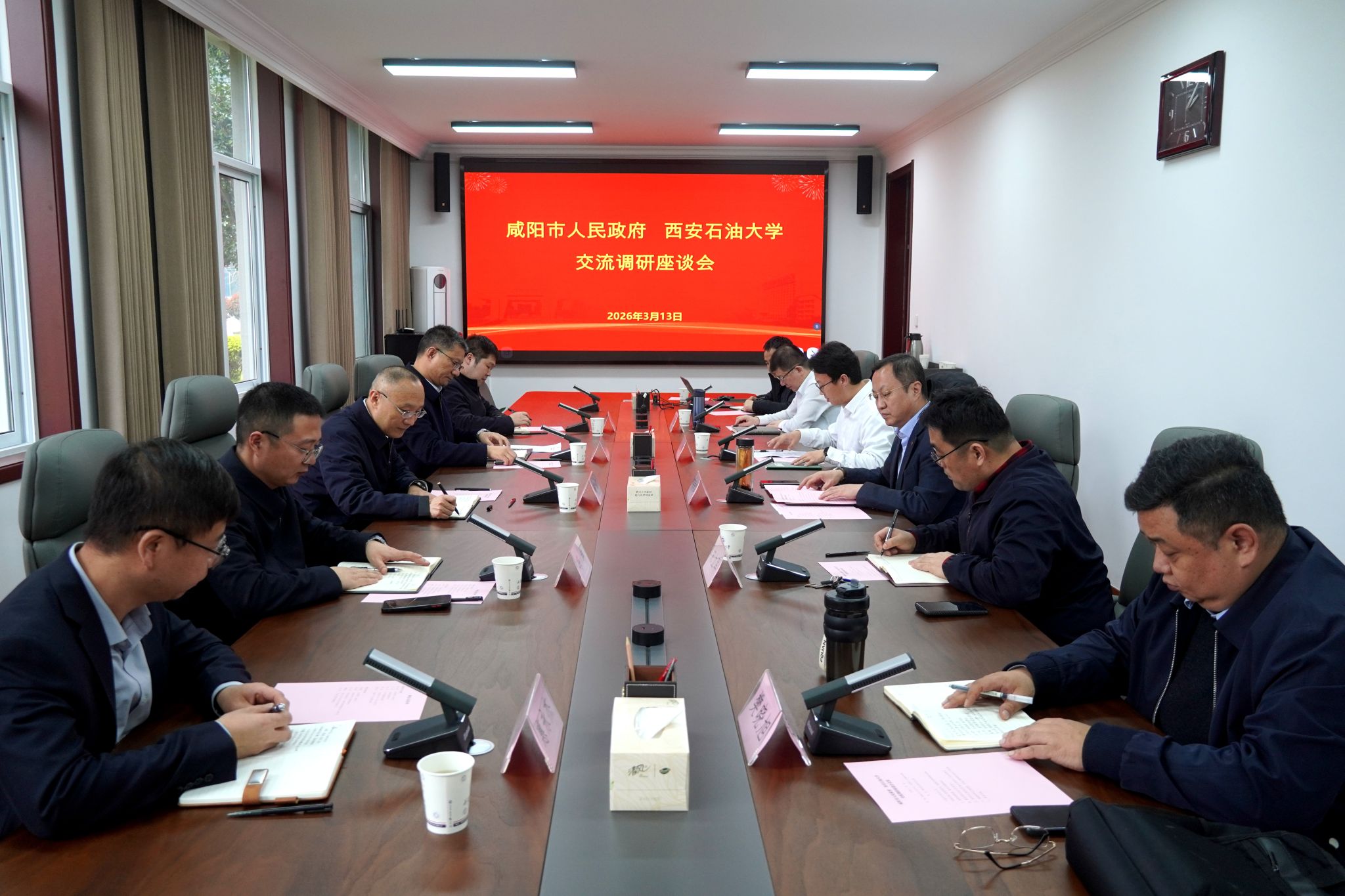 王进富代表学校对杨彬一行的到访表示热烈欢迎。他指出,学校作为地方行业特色高校,长期围绕油气勘探开发、新能源等领域开展科技创新和人才培养,在校企校地合作、科技成果转化等方面取得了显著成效。后续,学校将进一步加强同咸阳市的合作交流,为国家能源安全及陕西省地方经济社会高质量发展贡献力量。