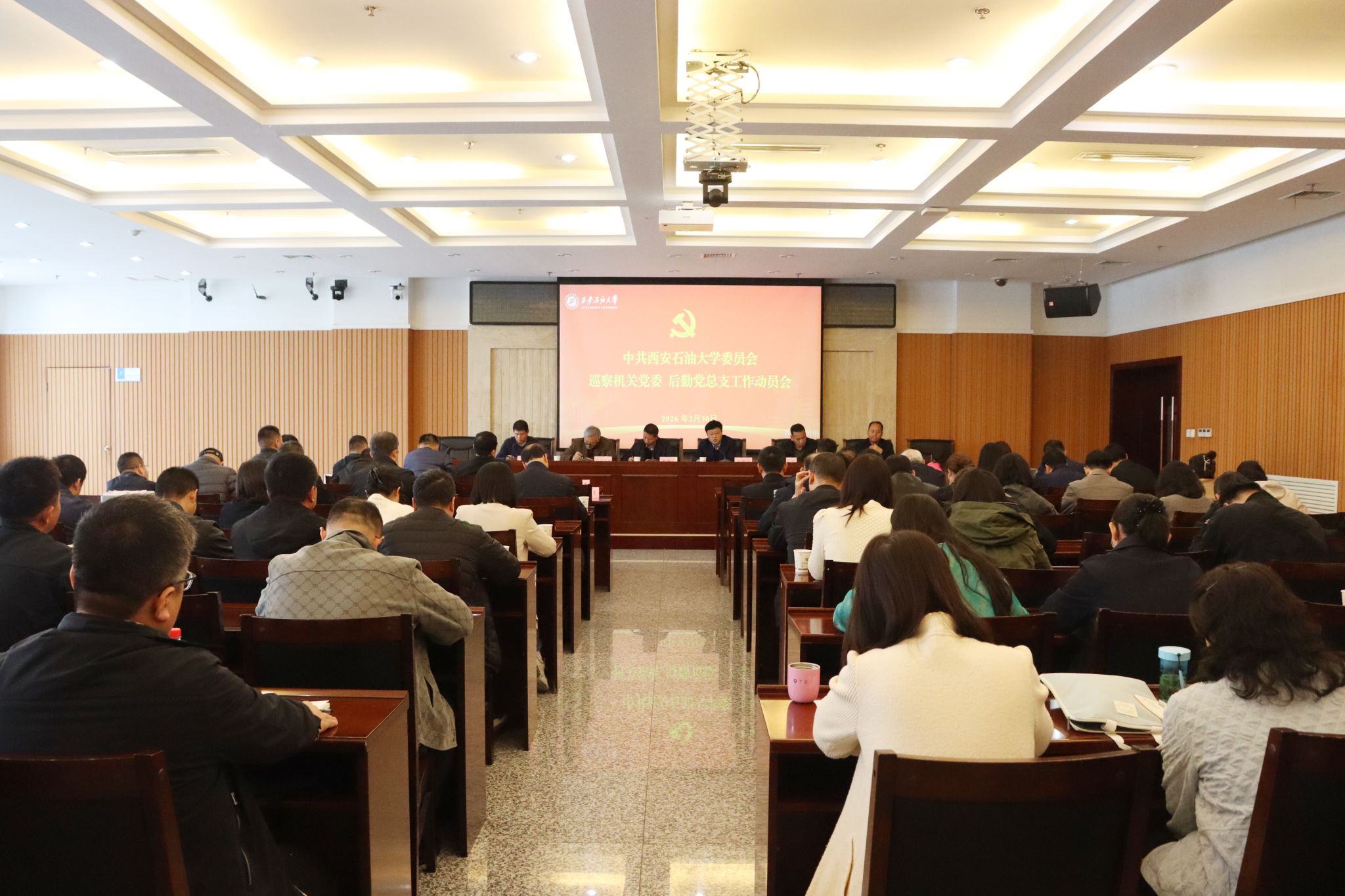根据学校党委巡察工作统一部署,3月30日下午,三届党委第三轮校内巡察工作动员会在鄠邑校区图书馆第一会议室召开。校党委副书记、纪委书记、监察专员,校党委巡察工作领导小组副组长王辉强出席会议并讲话。第三轮巡察第一、第二巡察组全体成员,巡察办全体人员,被巡察单位党组织领导班子成员、党支部书记、科级干部、学校第三次党代会代表、管理干部代表及民主党派代表参加会议。会议由党委巡察工作办公室主任苟毅飞主持。