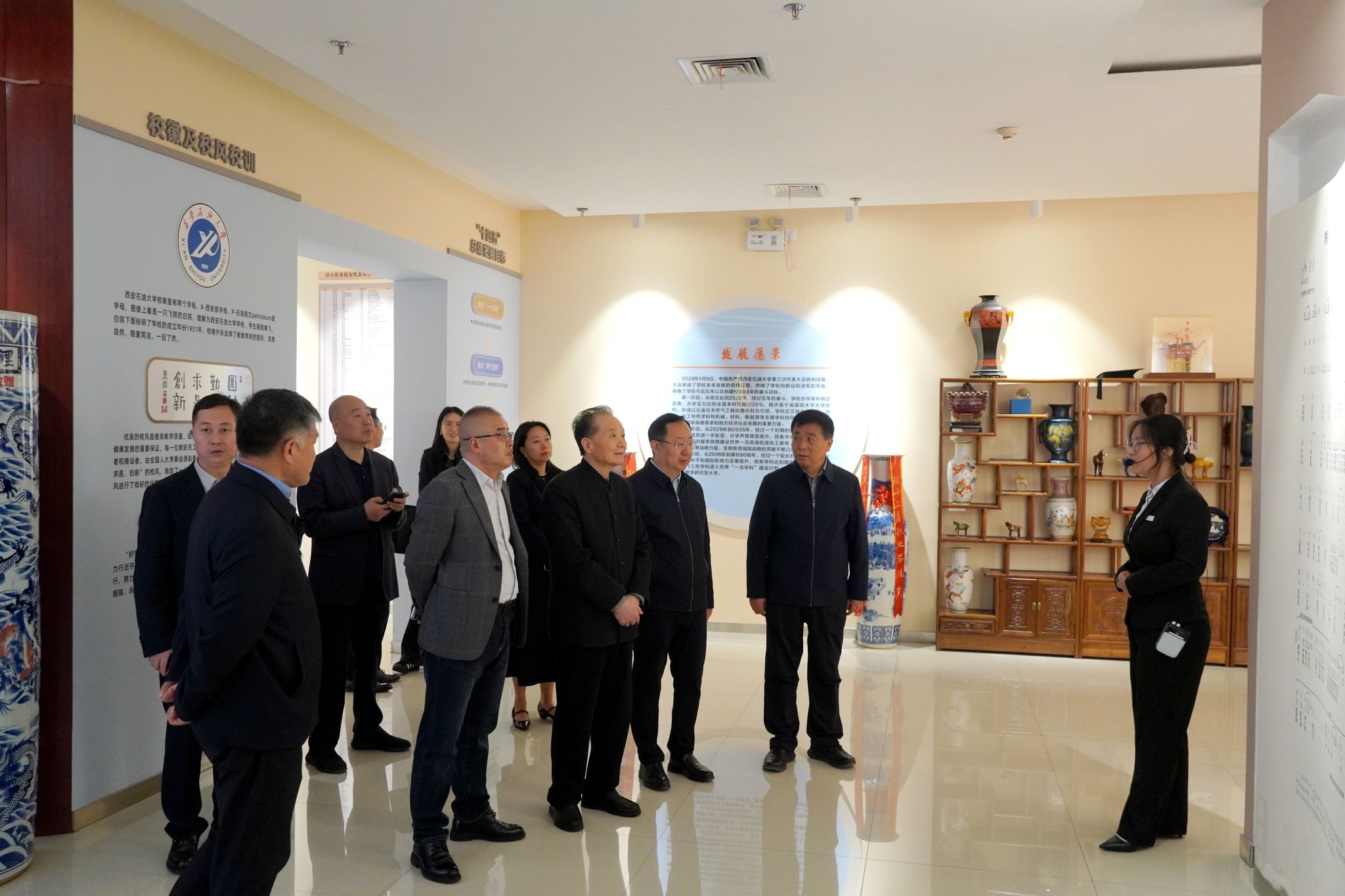 会前,刘浩春一行在种宇宏陪同下,参观了学校铁人王进喜纪念馆与校史馆,实地感受学校的办学底蕴、文化建设成果与铁人精神育人氛围。