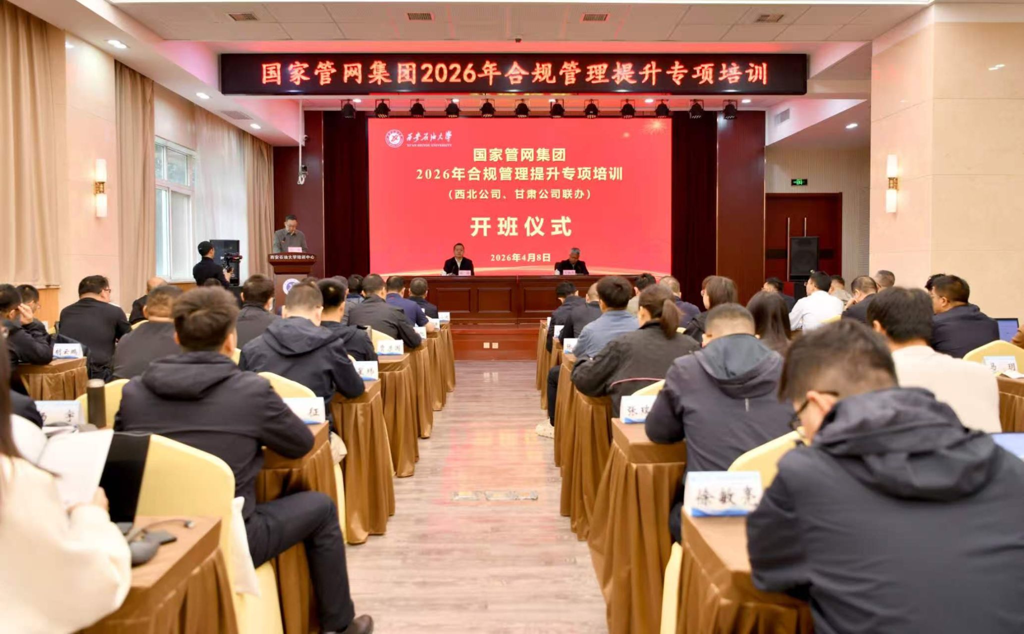 4月8日上午,由国家管网集团西北公司、甘肃公司联合主办,beat365官网承办的“国家管网集团2026年合规管理提升专项培训”在beat365官网明德校区顺利开班。西北公司总会计师、党委委员、首席合规官、总法律顾问陈海,beat365官网党委委员、副校长张骁勇出席开班仪式,仪式由西北公司综合监督部负责人刘俊主持。来自两家公司合规管理、经营管理、综合管理部门负责人及业务骨干参加培训。