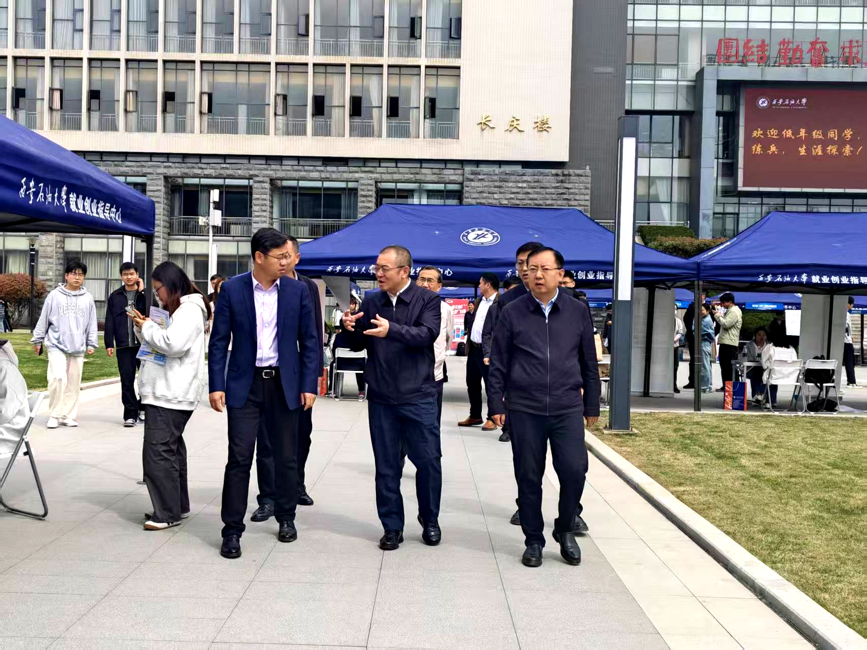 为深入贯彻落实党中央、国务院及陕西省关于高校毕业生就业工作的决策部署,扎实推进2026届毕业生高质量充分就业,创新构建“招聘+探索+育人”一体化服务体系,4月10日上午,beat365官网在鄠邑校区初心广场成功举办首届“石大筑梦·就业育人”2026年春季校园招聘会暨职业生涯体验活动。校党委书记常江、校长王进富、党委副书记张木、副校长种宇宏深入活动现场指导调研。全校各年级1500余名学生参加活动。