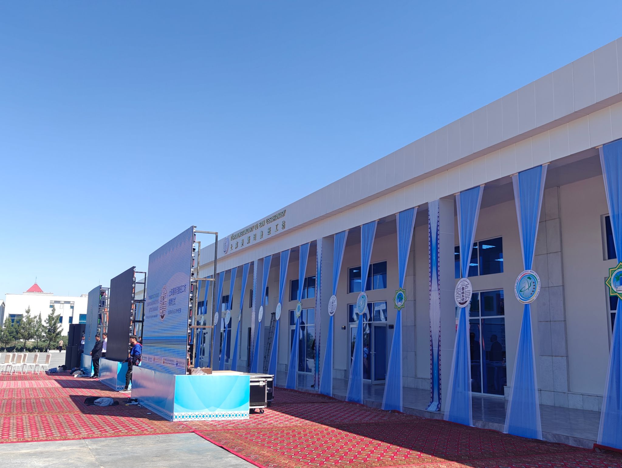 4月16日,土库曼斯坦鲁班工坊揭牌仪式在土库曼斯坦首都阿什哈巴德卡卡耶夫国际油气大学校内隆重举行。中共中央政治局常委、国务院副总理丁薛祥出席土库曼斯坦鲁班工坊揭牌仪式并致辞。土库曼斯坦副总理兼外长梅列多夫、副总理阿加扎诺夫、副总理马梅多夫出席活动。