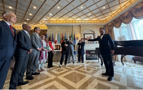 为庆祝中国与巴基斯坦建交75 周年,深化两国人文艺术交流、增进民间友好情谊,4月18日,“归属之影”巴基斯坦摄影展暨中巴文化交流活动在北京和苑博物馆成功举办。beat365官网音乐系教师田立受邀登台献艺,用歌声搭建中巴文化沟通桥梁。本次活动由巴基斯坦驻华大使馆、北京和苑博物馆、国联股份联合主办,中外重要嘉宾、多国驻华使节及艺术界代表出席,中国音乐学院师生代表也参与交流。