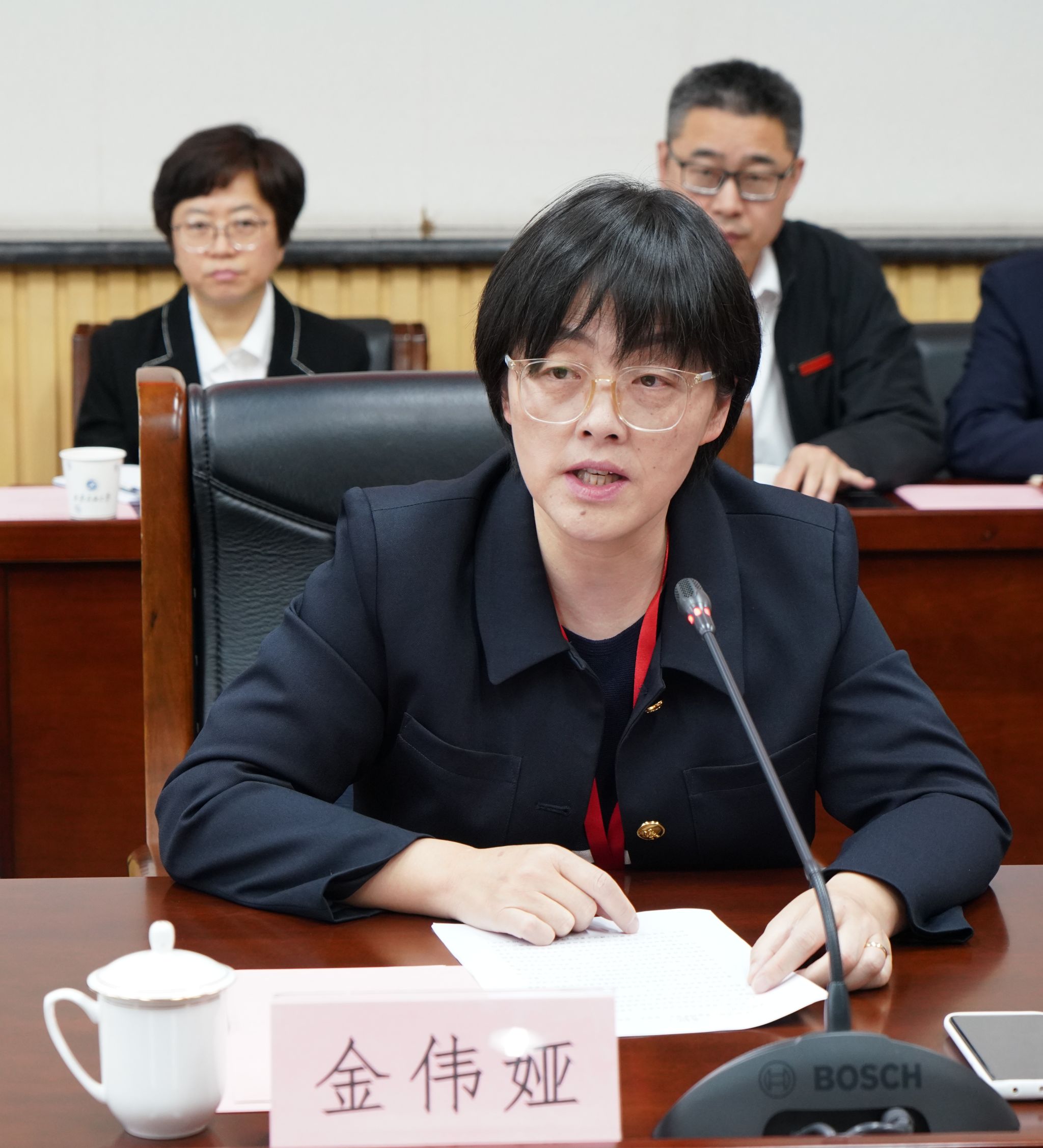 金伟娅组长阐述了本次现场考查的核心目的、流程与相关要求,强调将围绕“学生中心、产出导向、持续改进”的认证理念,重点核查专业人才培养的达成情况与质量保障机制运行的效果。