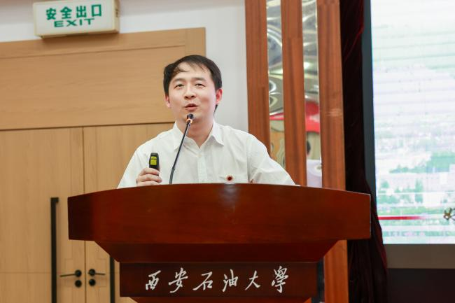 研究生工作部部长田虹霞从活动定位、遴选逻辑、赋能体系、实施路径四个维度系统介绍了活动整体设计。她讲到,"西油研讲"是研工部打造的集思政教育、学术素养提升、成长发展服务于一体的品牌化平台,本次“研途榜样说”是直面科研挑战、启迪生涯规划的核心引擎。活动严把政治与学风双重关口,践行多元复合评价标准,遴选12名主讲人,宣讲内容涵盖从科研到实践、从学术到就业等七大维度,研究方向紧密对接油气绿色开发、新能源等国家战略急需领域。活动创新采用“学生主讲+特聘导师”的赋能模式,聘请3位博士学位研究生辅导员组成特聘导师团,形成师生同向同行的育人新生态。她希望通过“西油研讲”系列活动的开展,营造“学在西油、研在深处、行在实处”的校园学术文化生态,让追求卓越成为研究生的内在自觉。