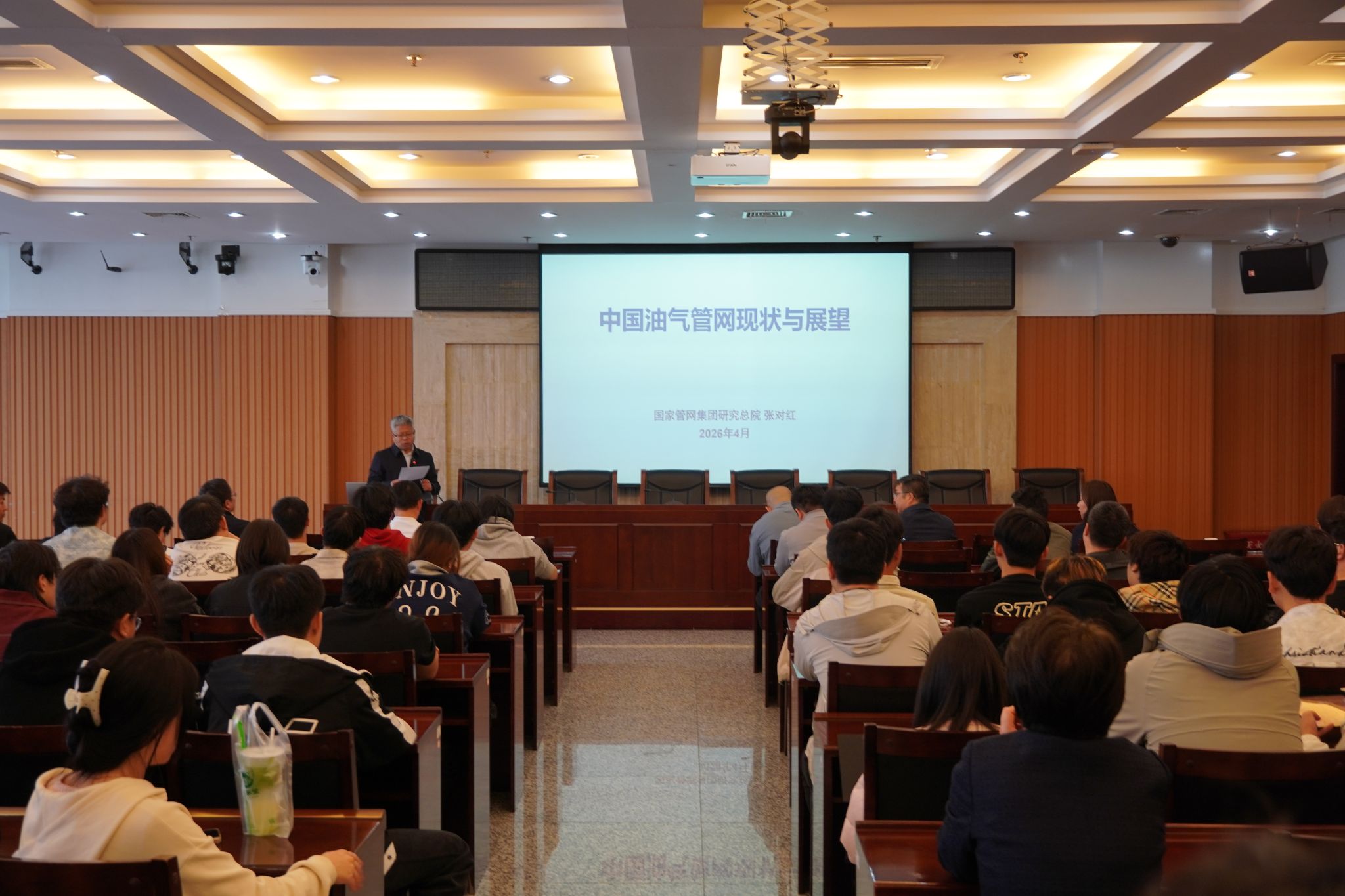 专题报告会在鄠邑校区第一会议室举行,由副校长张骁勇主持。张对红以国家能源管网建设发展为核心,系统阐述了我国“全国一张网”建设格局,全面梳理原油、成品油、天然气三大长输管网四大战略通道,以及集输、城燃、海洋、区域管网全域布局,详解 LNG 接收站、储气库等关键设施的能源保障能力,生动展现国家能源大动脉的坚实根基与壮阔格局;深入总结我国油气管网在材料、设计、施工、运行四大核心环节的技术跃升历程,从普通碳素钢到 X80 高端管线钢的材料突破、从经验设计到可靠性设计的理念革新、从人工会战到智能建造的模式升级,全景展现中国管道行业从跟跑、并跑到领跑的自主创新之路;前瞻性提出未来管网将从“油气动脉”向“能源中枢”转型,朝着介质多元化、运行智慧化、学科交叉化、资产价值重构方向迈进,为石油储运及相关专业人才培养、科学研究指明了前沿方向。