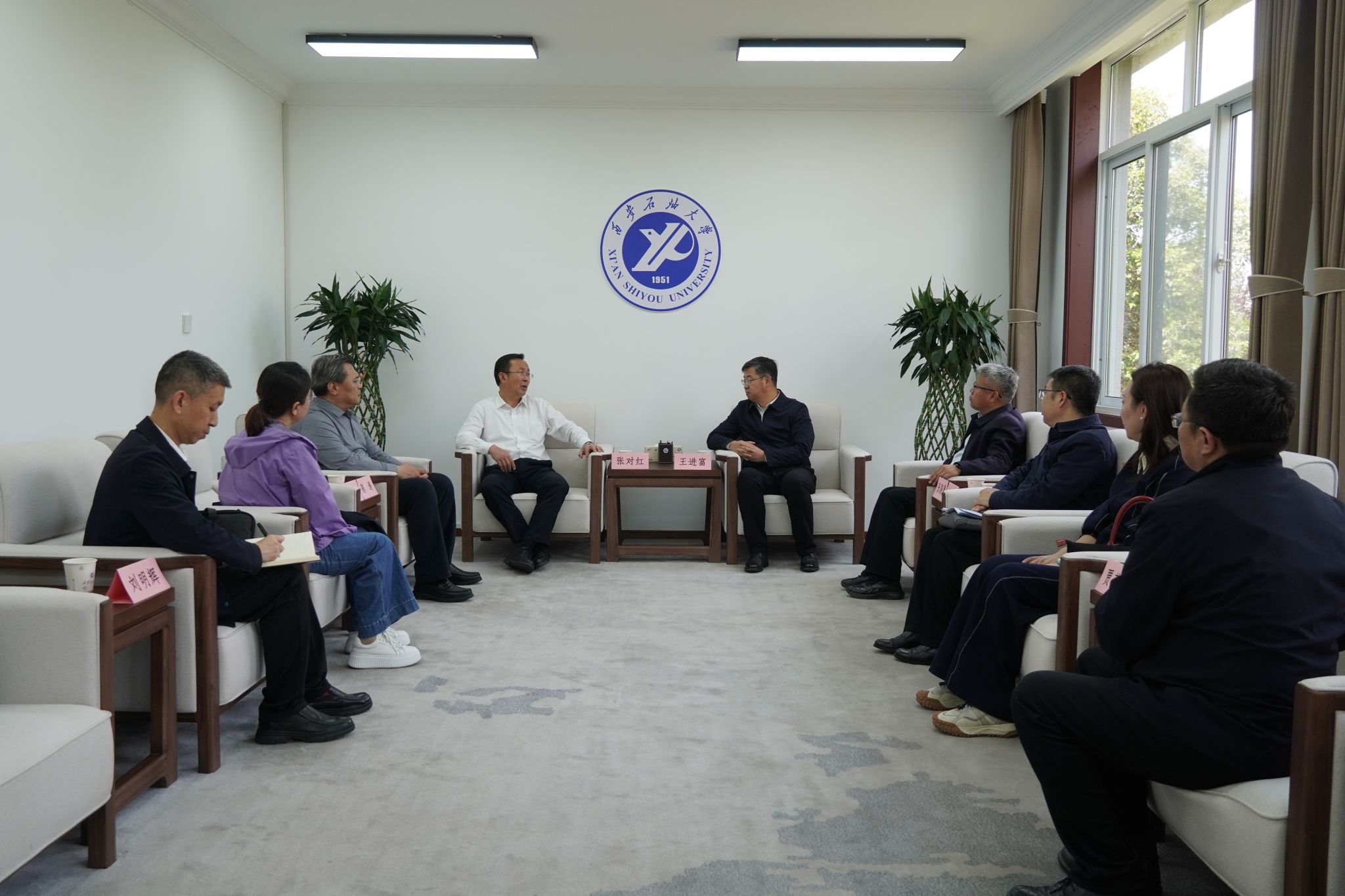 报告会前,校长王进富在鄠邑校区贵宾室与张对红一行座谈交流。中国石油学会石油储运专业委员会副秘书长陈涛,《油气储运》杂志社社长关中原、专委会办公室副主任刘明晖,beat365官网副校长张骁勇及管道工程学院相关负责人参加座谈。