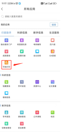 3.自助打印和可信电子文档服务手机端登录方式:使用“i西石大”手机APP,在首页找到“全部应用“点击”可信打印”即可进入可信电子服务页面。成功登录后,在首页点击【电子成绩&电子证明】,根据自身需求选择需要下载。