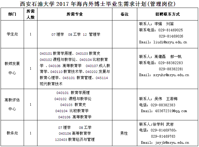 beat365正版唯一官网2017年海内外博士毕业生需求计划(教师岗位)
