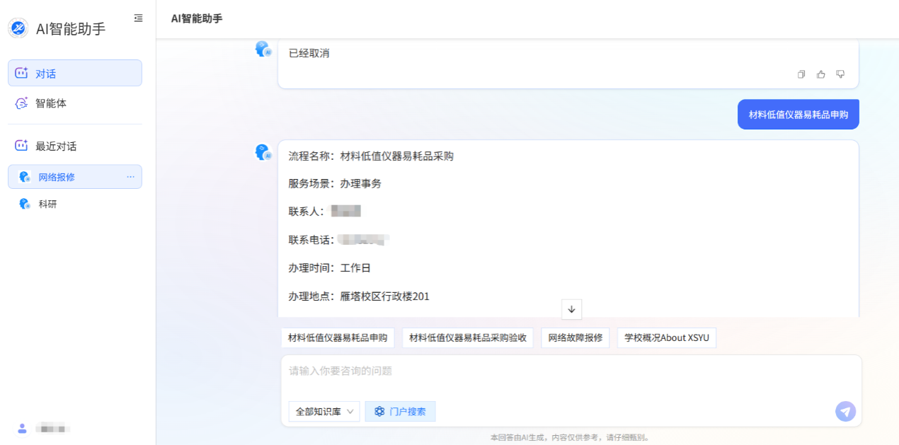 AI小油智能助手:24小时智慧服务新标配。融合服务门户同步搭载AI小油智能问答系统,聚焦奖助政策、办事流程、校园网络等高频咨询场景,提供7×24小时即时响应服务。