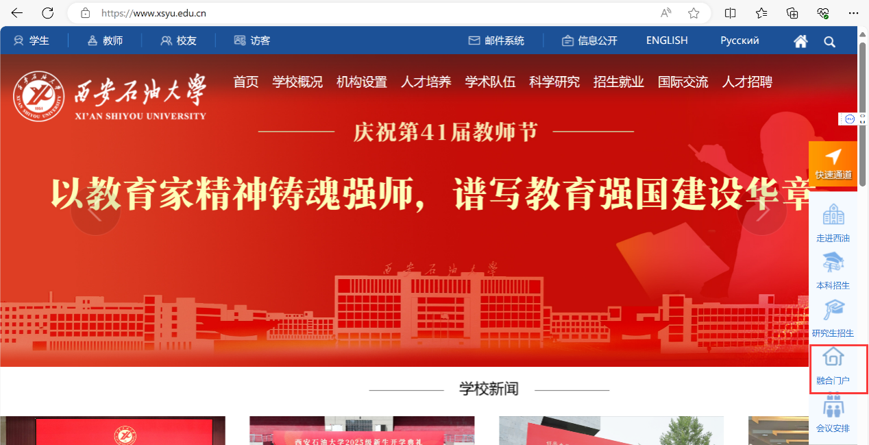 融合服务门户打开方式:PC端:学校首页-右边栏-快速通道-融合门户。