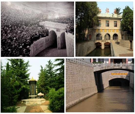 展览馆参观结束后,全体学员来到红旗渠分水闸处,参观了红旗渠总干渠在此一分为三的分闸场面。该处分水闸建筑长6.5米、高12米、宽13.5米,闸底高程454.44米,海拔低于渠首进水闸底10.31米。看着眼前巍然的水利建筑、听着耳边一段段无私奉献牺牲的故事,学员们无不为林县人民不畏艰险勇于拼搏的精神所感动。特别是在红旗渠纪念馆看过一幅反映当年开闸放水,成千上万的百姓涌向红旗渠,争睹那激动人心时刻的场景照片后,切身来到实地分水闸处实地观摩,此时此刻,心潮起伏,全体学员的心灵都被深深震撼。