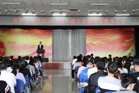 为加强学生的安全意识,进一步做好校规校纪教育,根据学校文件要求和学院工作安排,4月17日下午,经济管理学院2016级年级大会暨安全教育大会在鄠邑校区腾辉大学生活动中心召开,年级辅导员武威老师、孙剑秋老师与2016级600余名学生参加。