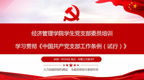 为深入学习贯彻《中国共产党支部工作条例(试行)》(以下简称《条例》)精神,切实将思想和行动统一到中央关于支部工作的安排部署上来,进一步加强党支部标准化规范化建设,真正落实好支部职责,发挥好支部战斗堡垒作用,根据《中共beat365正版唯一官网委员会关于认真学习贯彻< 条例>的通知》(西石大党组〔2019〕27号文件)精神,结合学院工作安排,4月16日中午,经济管理学院学生党支部委员“学习贯彻《条例》”专题培训在鄠邑校区经管人文楼307党员活动室开展,学院组织员武威老师和学生党支部委员共20余人参加。
