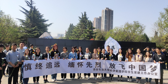 4月5日上午,经济管理学院 “慎终追远,缅怀先烈,放飞中国梦”主题党日活动在爱国主义教育基地西安烈士陵园开展。学院组织员武威老师、学生党员代表共20余人参加。