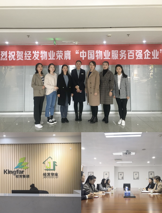 在走访过程中,两位辅导员老师向经发物业公司介绍了近期经管学院一系列旨在增强学生就业能力,为企业提供优秀人才的各种举措。同时从经发物业公司人员介绍中也实地的了解了该公司的组织架构,工作环境,用人标准以及公司管理制度。