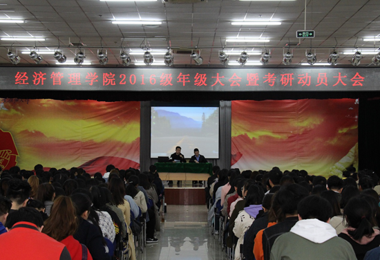 3月13日下午,经济管理学院2016级年级大会暨考研动员大会在鄠邑校区腾辉大学生活动中心召开。考研辅导专家王思阳老师、李茸老师出席,辅导员武威老师、孙剑秋老师与2016级600余名学生参加。