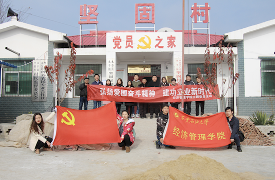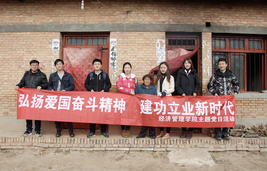 为认真贯彻落实习近平总书记对弘扬爱国奋斗精神作出的一系列重要指示和西石大党组〔2018〕77号文件精神,按照学院具体工作部署,11月13日,经济管理学院“弘扬爱国奋斗精神、建功立业新时代”主题党日活动在学校对口帮扶的永寿县永平镇坚固村开展。经济管理学院党委副书记赵海涛、学院全体学工干部、学生党员代表近20人参加。