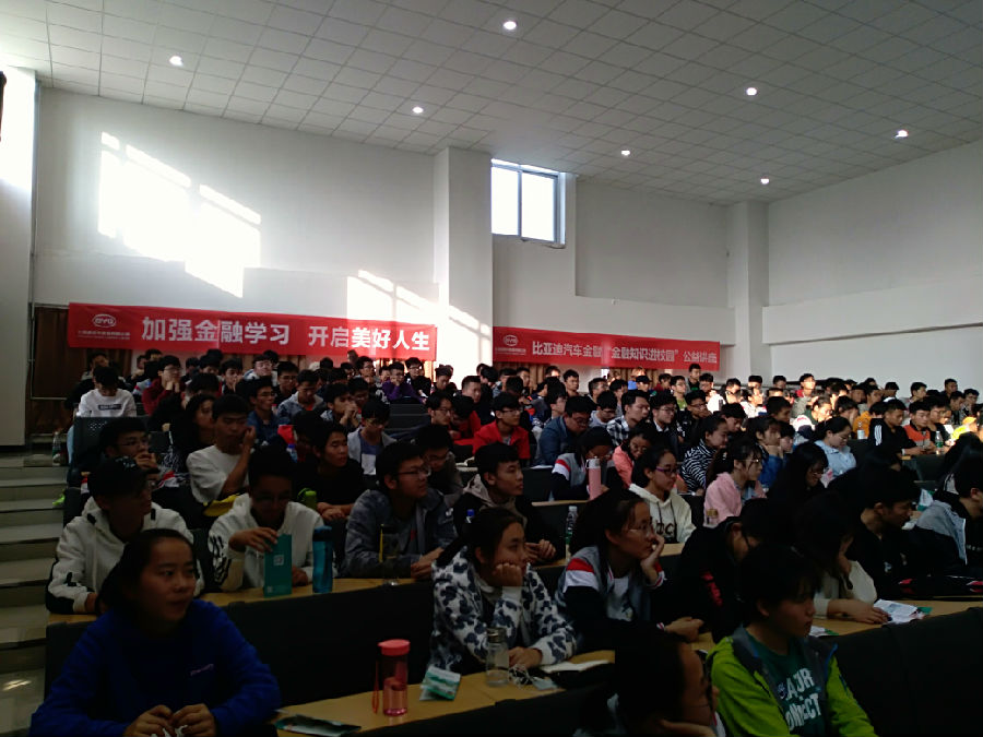 11月1日下午4点,地球科学与工程学院在鄠邑校区石工地科楼115教室举办主题为“金融知识及风险防范分享”报告会。本次报告会由李化杰老师主持,学院特邀比亚迪汽车金融有限公司公益报告团队担任主讲,学院260余名同学参加了报告会。