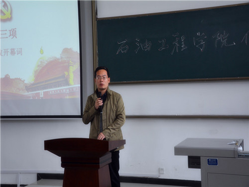 为深入学习贯彻习近平新时代中国特色社会主义思想和党的十九大精神,落实全国高校思想政治工作会议精神,进一步推进“两学一做”学习教育常态化制度化,响应学校要求,推动我院学生党支部建设,提高学生党支部组织生活的质量和效果,增强学生党支部的创造力、凝聚力和战斗力,石油工程学院党委于2018年10月24日中午12:30在鄠邑校区石工地科楼115教室举行了学生党支部优秀组织生活创新案例评选活动。学院党委书记马勇、党委副书记张建高、党委组织委员孙会珠、化学化工学院党委兼职组织员屈敏佳、经济管理学院党委兼职组织员武威受邀参加并担任评委,学院全体辅导员及130余名学生党员也参加了活动。