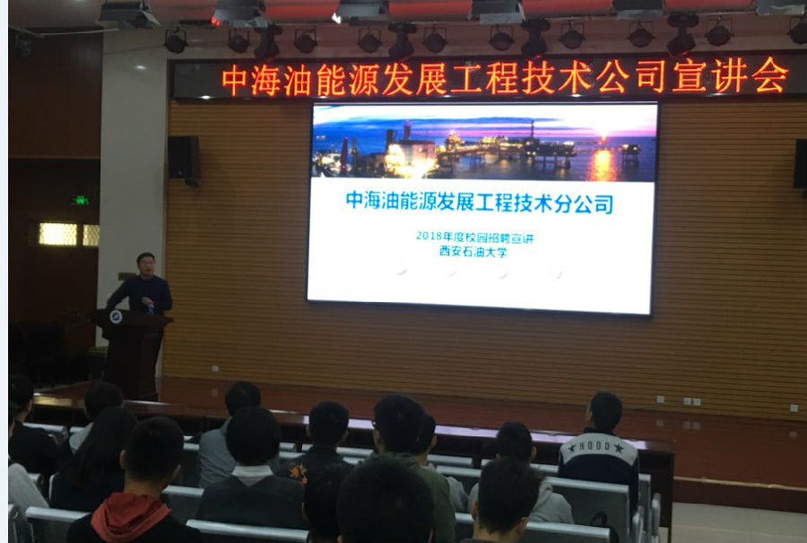 2018年10月16日上午,地球科学与工程学院在鄠邑校区就业指导中心多功能厅举办中海油能源发展工程技术分公司专场招聘会,公司人事经理刘作鹏一行五人出席招聘会,beat365官网100余名毕业生参加招聘会。
