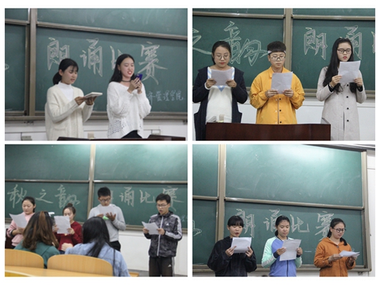 2018年10月17日下午6点20分,经济管理学院在鄠邑校区B区221教室举办了“弘扬爱国奋斗精神、建功立业新时代”第十二届“秋之韵”诗文配乐朗诵比赛。来自2018级各班的选手及观众近200人参加了此次活动。
