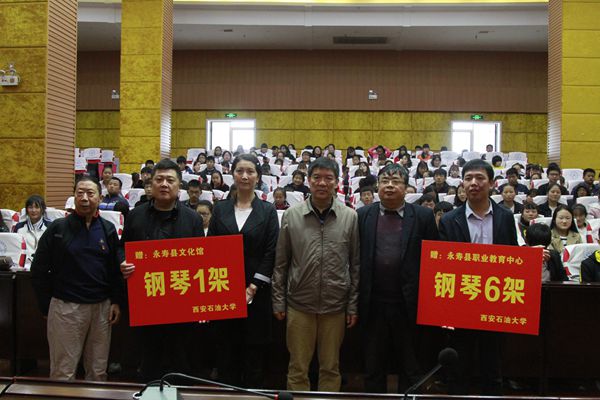 9月27日,冒着绵绵秋雨,校工会再次向永寿县捐赠钢琴捐赠。这次共向县职教中心捐赠钢琴6架,向县文化馆捐赠1架,至此,beat365正版唯一官网已向永寿捐赠钢琴14架。