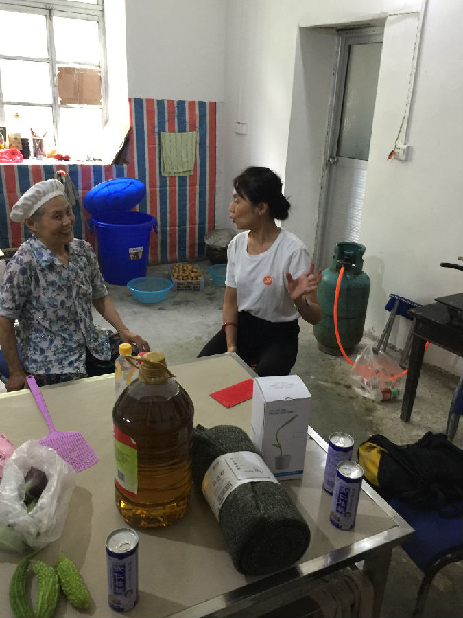 廖书记代表学院给学生送去了慰问金、食用油、休闲毯、小台灯等慰问品,她还专程给家里的老人送去了一份蛋糕。走访中,廖书记向家长通报了学校、学院的发展以及学生本人的整体表现情况。受访的同学和家人都非常感动,表示一定加油努力学习,通过自己的努力,回报社会,回报学校。