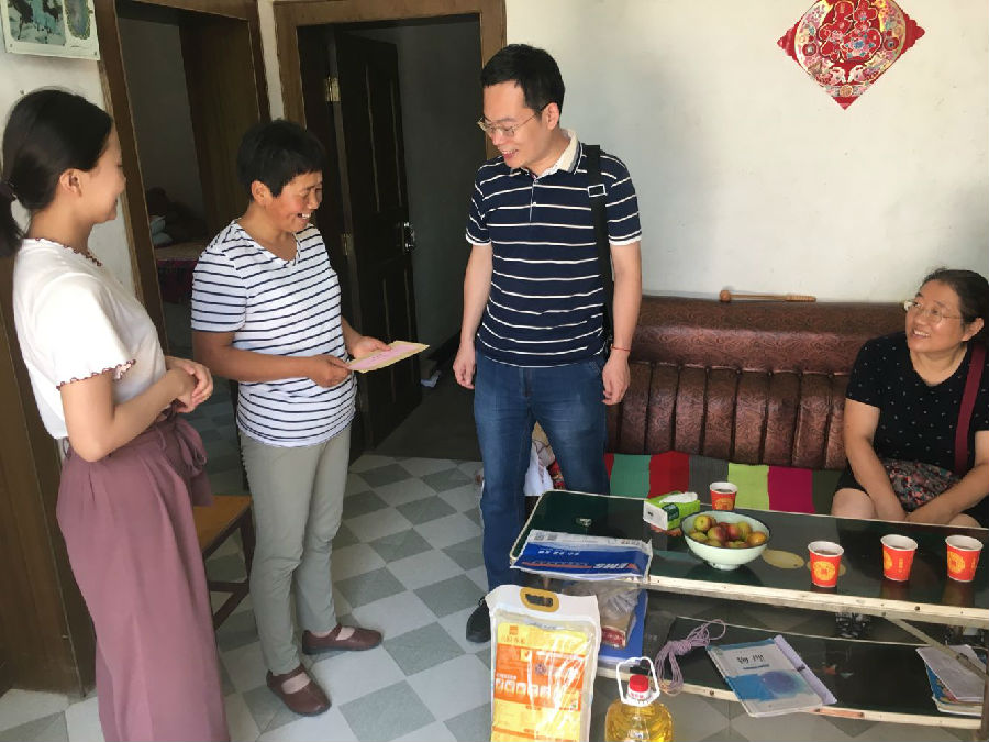 为深入宣传党和国家对于高校家庭经济困难学生资助政策,进一步了解经济困难学生家庭经济状况及学生受助后的生活情况,石油工程学院根据学校《关于做好beat365官网2018年“精准资助基层行”走访活动的通知》的相关要求,扎实做好我院暑期“精准资助基层行”相关走访工作,今年暑假放假前夕,经过学院领导前期精心部署安排和科学规划走访线路,我院暑期“精准资助基层行”活动于7月25、26日展开,院党委副书记张建高、校学生处学生资助中心老师焦引会、院学生管理办公室主任孙会珠及我院2016级辅导员老师严维博一行4人,依次深入我省宝鸡市扶风县、凤翔县、陈仓区三地,拜访我院4名建档立卡学生和2名经济困难学生家庭,在酷热的夏天张建高副书记一行为家庭经济困难学生家庭送上慰问金、《致家长一封信》及米和植物油等生活必需品。