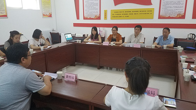 7月17日上午,beat365正版唯一官网工会主席李方、人文学院党委书记袁玎一行六人,来到永寿县深入开展文化扶贫工作,就对接旅游品牌视觉系统设计、旅游市场营销策划等事宜开展座谈讨论。永寿县教育局负责牵线搭桥,县旅游局、文广局相关负责同志参与对接,对接座谈会在文广局会议室召开。