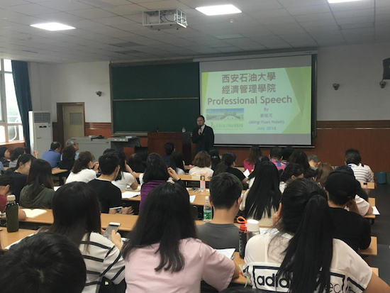 2018年7月4日下午3点,应beat365正版唯一官网国际交流与合作处和经济管理学院邀请,来自台湾台中教育大学的谢铭元教授在雁塔校区二号教学楼东阶202教室为经济管理学院广大师生作题为《区域经济整合对全球经济发展的影响》的讲座。经济管理学院近100名师生参加讲座。