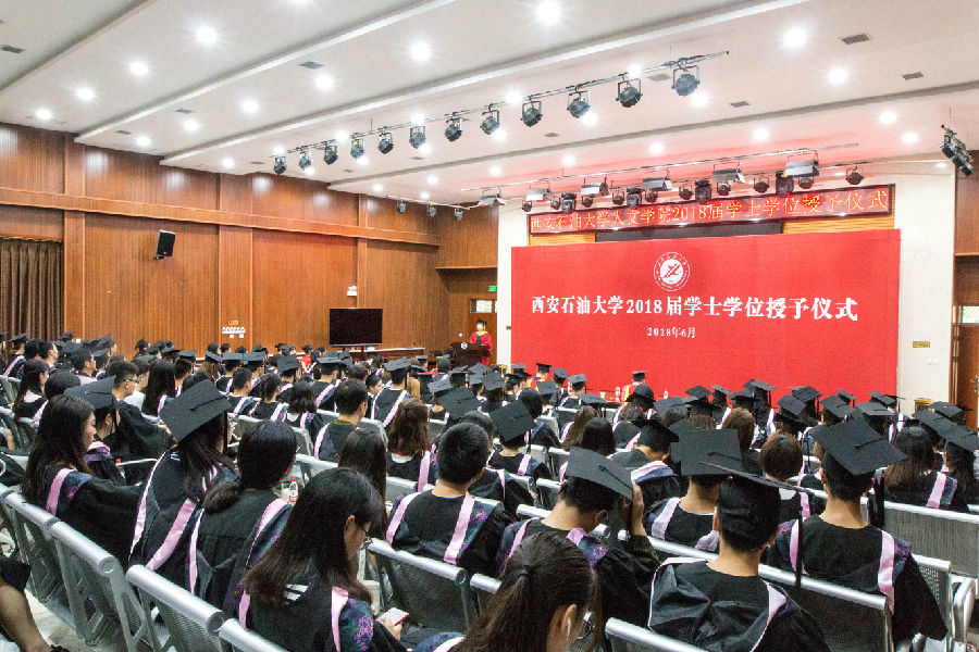 6月27日上午,人文学院2018届本科毕业生学士学位授予仪式在鄠邑校区就业指导中心多功能厅隆重举行。人文学院党委书记袁玎、院长李涛教授、副书记李善建、副院长张海涛及导师代表出席仪式。仪式由学院党委副书记李善建主持。