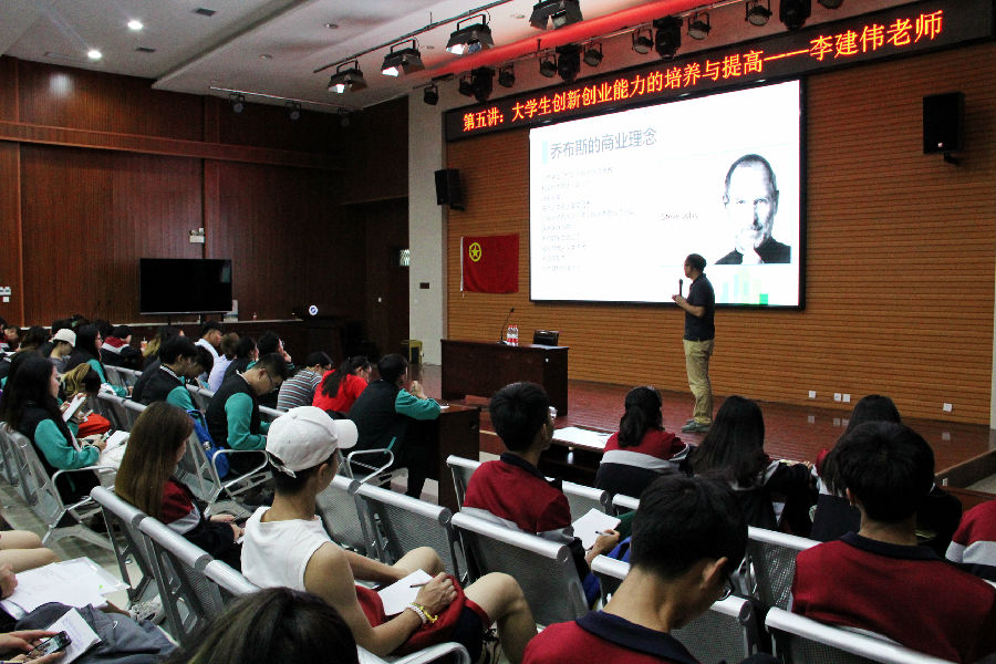 首先李建伟老师向我们进行了自我介绍,其次他向我们介绍了创业先河中比较有名的几位企业家,包括乔布斯,马克扎克伯格,以及中国的张旭豪和杨志远等人,并介绍了他们创办自己企业最开始的思想以及他们是如何付诸于实践。之后他给我们说明了中国大学生创新创业的现状和问题,并根据这些问题给出了自己的见解和解决方案,他认为现在应该着手解决的是如何改进对于学生创业的一种指导和服务,在几方面上提出了相应的解决方案。 与此同时,李建伟老师还提到因为现在中央鼓励大学生进行创新创业,所以我们拥有着独天得厚的是条件,我们需要的是提高自己对于创新创业的兴趣与热爱,其次应该深刻了解到创新创业的精神与品质,老师还提到了创业的核心是创办企业,并且要有详细详实的方案来做好充足的准备进行创新创业。