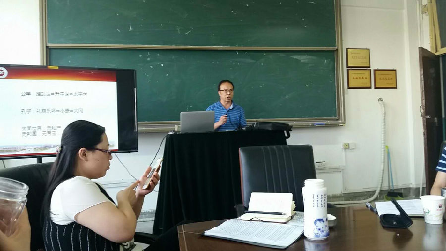 在全校上下思政课大练兵活动深入开展之际,6月10日上午8时,马克思主义学院院领导班子召集院教授委员会、院督导组、各教研室主任的所有成员,为即将代表学校参加省级比赛的左玲、郭艳英、韩毅、胡艳等四位思政课老师进行专家指导和课程打磨,在一上午的课程演示、内容商议中,各位老师积极出谋划策,提出了众多宝贵意见,各位老师针对课程细节、仪表仪态、讲授技巧等多方面进行指导,为四位即将参赛的教师提供了新的改进思路,也为不久之后参加省级比赛打下了坚实的基础。