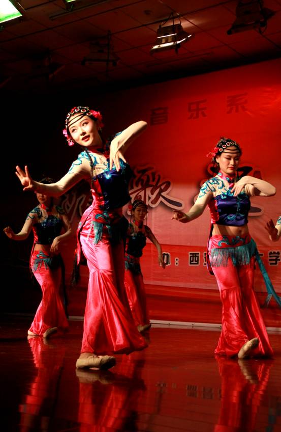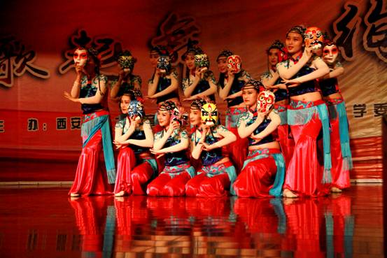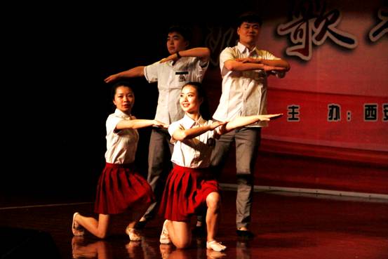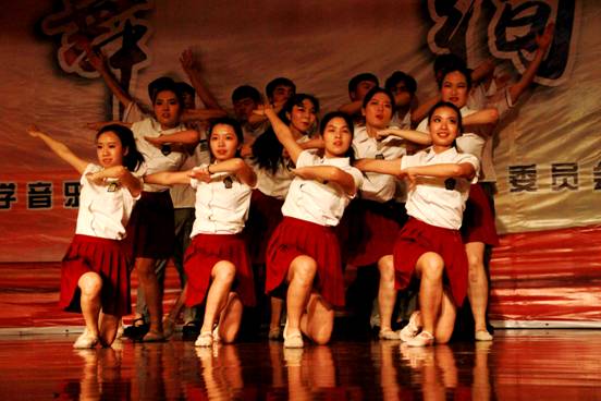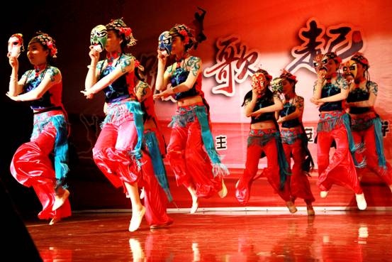 本场晚会由我系宋淼老师总策划,全程指导学生排演节目并制定演出方案。教师与学生携手演绎,李阳、田立老师演唱歌曲《我爱你中国》为本场晚会拉开了序幕,校工会教师舞蹈队的《C哩C哩、茉莉花》将现代及古典舞蹈相结合,展现了beat365官网热爱舞蹈的教工风采;现代舞蹈、萨克斯重奏《雨中曲》、影视歌曲联唱等曲目赢得了观众的阵阵掌声;周伟老师指导的音乐系合唱团演唱的大合唱《长恨歌—仙乐风飘处处闻》、《十送红军》大气磅礴,;民乐合奏、女生小合唱、傣族舞和独唱更是体现了我系学生专业水准;由我系舞蹈教师何云老师自编自导的舞蹈《京剧脸谱》,舞蹈动作大气到位、服装道具美轮美奂、编舞专业化程度高,让人耳目一新,震撼全场;结尾舞《辉煌明天》将晚会推向了高潮,晚会在全场同学的掌声中圆满落下帷幕。