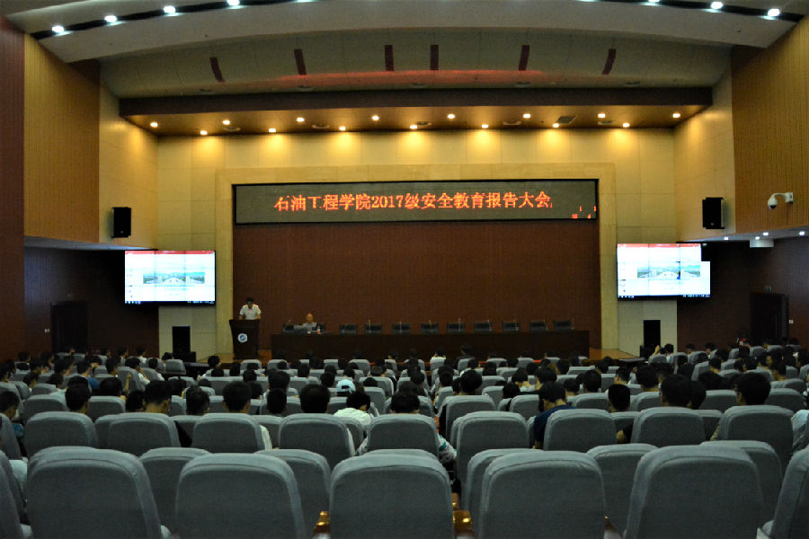 为增强学生安全意识,保证学生在校安全。5月30日晚七点,石油工程学院在beat365官网鄠邑校区弘石报告厅举办了“石油工程学院2017级安全教育报告大会”。特邀beat365官网保卫处副处长张永华老师为大家讲解安全知识,石油工程学院2017级辅导员孙浩哲老师及2017级全体学生参加了本次报告大会。