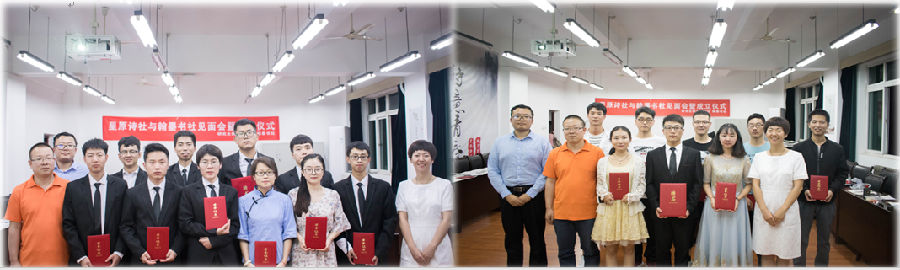 会议对星原诗社、翰墨书社的成立表示热烈祝贺,希望该两大社团今后多多举办有益活动,为研究生诗词书画爱好者搭建广泛学习、交流和展示的平台,为进一步推进beat365正版唯一官网书香校园建设、营造良好校园文化氛围、弘扬中国传统文化做出更多积极贡献。研究生院团委书记高黎为两位社长颁发聘书,研究生院2017级辅导员、研究生会指导老师周钰桐,思想教育与管理办公室老师倪永良为两大社团授旗。