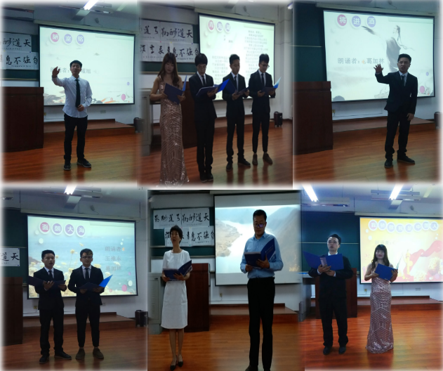 在诗歌朗诵环节,在辅导员高黎、周钰桐的带领下,来自10余个学科(背景)的各年级的诗词朗诵爱好者20余人,声情并茂地朗诵了12首作品,感染了在场的每一位师生。《我是中国人》和《我骄傲、我是中国人》读出了中国人的民族自豪感;《一棵开花的树》《陋室铭》《面朝大海》抒发了对人生真谛的自然感悟、志向高洁的高雅境界和对人生向往的直抒胸怀;《将进酒》《致橡树》不仅有万丈豪情的激情澎湃,也表达了美好爱情的浪漫情怀。尤其是星原诗社社长陈阳两篇原创诗作《答远方的诗》、《给青海湖》,更是描绘了石油人勇于拼搏、开拓进取、献身祖国石油建设事业的美好画卷。陈阳社长同时就创作背景、诗篇立意及灵感来源作了交流汇报,听完令人精神鼓舞,心向往之,投身到祖国石油建设事业的“恋油之情”油然而生。