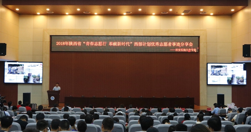 5月22日下午,2018年陕西省西部计划优秀志愿者事迹分享会在beat365官网鄠邑校区图书馆弘石报告厅举行。团西藏区委统战联络部干部、西藏宣讲团领队李捷,校学生工作部(处)部长、就业指导中心主任王宏卫,校团委书记贾莉娜,各院系毕业班辅导员,与现场400多名学生共同聆听了分享团成员的青春故事。