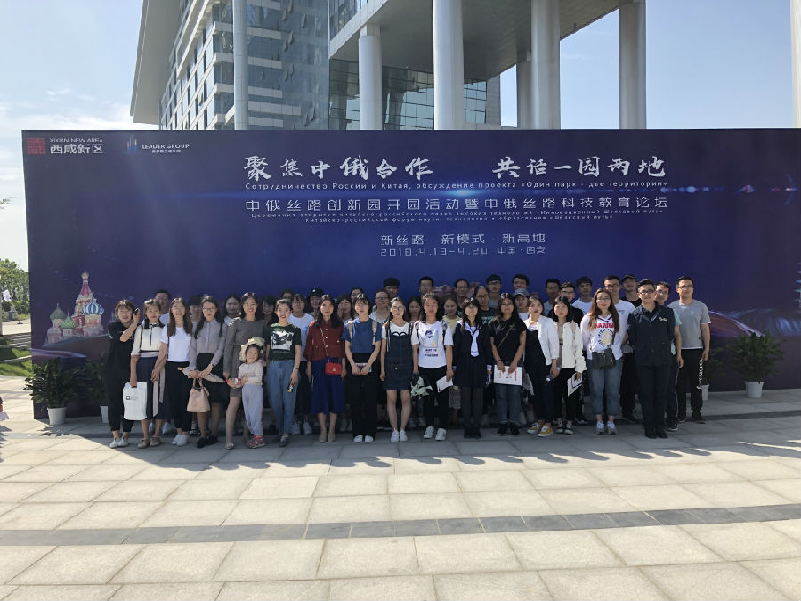 2018年4月18日,“中俄丝路创新园开园仪式暨中俄丝路科技教育论坛”在西咸新区沣东新城正式拉开帷幕,本次教育论坛邀请了俄罗斯莫斯科财经法律大学,圣彼得堡国立经济大学,莫斯科经济大学,莫斯科鲍曼技术大学等17所知名高校代表参会,外国语学院俄语系也积极组织师生前往参加本次活动。