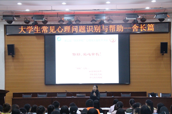 为落实beat365官网第三届“阳光护航”心理育人宣传季活动计划,提升经济管理学院“阳光护航”心理育人月系列活动水平,2018年4月12日晚,经济管理学院邀请beat365官网学生心理成长指导中心主任肖琼副教授在经管人文楼118室举办《大学生心理问题识别与帮助——舍长篇》专题讲座。经管院各年级辅导员和2015、2016级宿舍长300余人参加此次活动。